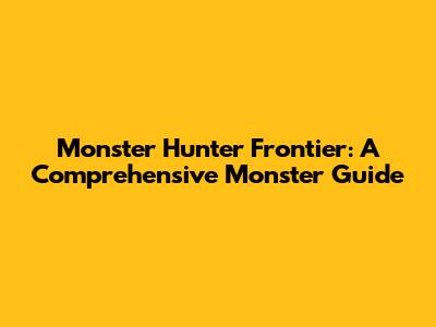 Monster Hunter Frontier: A Comprehensive Monster Guide