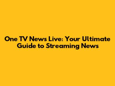 One TV News Live: Your Ultimate Guide To Streaming News