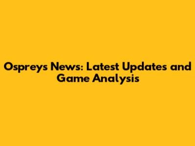 Ospreys News: Latest Updates And Game Analysis