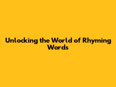 Unlocking The World Of Rhyming Words